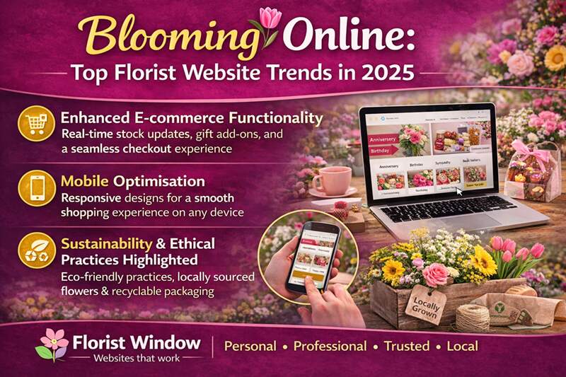 Top Florist Website Trends in 202502 June 2025 Blooming Online: Top Florist Website Trends in 2025 In today’s fast-changing digital world, florist websites are blossoming with fresh designs and clever features to capture customers and improve the online experience. As we move through 2025, several key trends are shaping how florists present themselves online. Here’s a look at the top trends, with a special focus on how Arts & Flowers in Leeds is setting an excellent example. Minimalist Design with High-Quality Imagery Modern florist websites are adopting clean, simple layouts that make the most of large, high-quality images. This approach lets the beauty of the flowers shine through and creates an immediate visual impact. Arts & Flowers shows off this trend wonderfully. Their website has a tidy, elegant layout, paired with bright, detailed photos of their stunning floral designs. Visitors can easily browse through seasonal bouquets, wedding flowers, and bespoke funeral tributes thanks to their clear and straightforward site structure. Enhanced E-commerce Functionality With more people shopping online, florist websites are boosting their e-commerce features. This includes real-time stock updates, easy-to-use product sections, and smooth checkout processes. All of these make the buying journey simple and satisfying for customers. On the Arts & Flowers website, customers can quickly explore popular categories such as Anniversary, Birthday, and Sympathy. Add-on gifts like chocolates, candles, and teddy bears are also just a click away, making it easy for shoppers to create a complete and thoughtful package. Mobile Optimisation With more browsing happening on mobiles, making sure florist websites work well on smaller screens is a must. A responsive design that adjusts to phones and tablets ensures that all customers enjoy a smooth, hassle-free experience no matter how they shop. Arts & Flowers has fully embraced this trend. Their website works beautifully across desktops, tablets, and smartphones, ensuring that every visitor has an easy and enjoyable experience from start to finish. Sustainability and Ethical Practices Highlighted More and more customers want to know they are supporting businesses that care for the environment. Florist websites are responding by proudly highlighting their eco-friendly practices, from sourcing locally grown flowers to using recyclable or biodegradable packaging. Arts & Flowers has deep roots in local flower growing, with founder Roy’s long history of cultivating chrysanthemums, dahlias, tulips, and daffodils. Emphasising this local heritage and sharing any current sustainable efforts on the website can further connect with today’s eco-conscious customers. Conclusion The online world offers florists an exciting stage to showcase their creativity and reach customers near and far. By embracing minimalist design, improving e-commerce tools, making sure sites work well on mobiles, and sharing ethical practices, florist websites can thrive throughout 2025 and beyond. Arts & Flowers in Leeds stands as a brilliant example of how traditional floristry can blend beautifully with modern website trends. Their combination of quality craftsmanship and an inviting online presence keeps them a favourite choice for customers looking for flowers for every special moment. For more updates on the latest trends shaping the floral world, keep following floristwindow.com. Blog Homepage