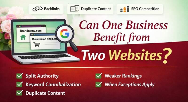 Two Websites for One Business? How Google Sees It07 March 2026 Florist Window · Ongoing guidance Can One Business Benefit from Having Two Websites? Thoughts from Tim at Florist Window This is one of those questions that comes up quite often, especially when businesses are trying to improve visibility on Google and wondering whether having more than one website might somehow help them take up more space in the search results. On the surface, it can sound like a smart idea. If one website can rank, perhaps two websites could do even better. In practice, it usually isn’t that straightforward. Google does not rank businesses as a whole. It ranks websites and pages individually, and that distinction matters more than many people realise. I’ve spent many years working with florist websites and watching how Google changes, and some patterns repeat more often than people realise. At a glance Can a business benefit from running two websites selling the same products? In most cases, Google treats them as separate websites, which can split authority, create duplicate-content competition, and weaken rankings rather than improve them. Below is a simple checklist-style explanation of how Google generally sees two websites belonging to the same business, selling the same type of products, from the same address, under the same name. This is not about scare tactics or absolutes. There are exceptions. But for most small businesses, and certainly for most independent florists, the pattern is usually very similar. 1. Google treats each website as a separate entity Google ranks domains and pages individually, not businesses. So if you have: brandname.com brandname-shop.com Google evaluates each website independently based on things like: Backlinks Content quality Site authority User signals Technical SEO This means authority gets split between two websites instead of being concentrated into one. For example: 100 backlinks to one website = a stronger ranking signal 50 backlinks to each of two websites = a weaker signal per site It is one of the reasons I often come back to clarity, structure, and consistency when talking about florist websites. I touched on some of those same themes in Florist Website Health Check for 2026, because the small structural things often matter more than people expect. 2. Duplicate or very similar content can cause competition If both websites sell the same products with the same descriptions, Google may see that as duplicate or near-duplicate content. This can lead to: Keyword cannibalisation, where both websites compete for the same searches Google choosing only one website to rank Both websites ranking more weakly than one strong website would It is not usually a penalty in the dramatic sense people imagine, but Google will often filter results and decide which version it prefers to show. Content still matters here, of course. I wrote about that in Content Is King, because one strong, useful body of content nearly always makes more sense than spreading weaker versions across multiple websites. 3. You can end up competing with yourself Instead of building one strong domain, you may end up with: Two weaker domains Split link equity Split SEO effort Split brand signals In most cases, one strong website will outperform two weaker ones. That is usually the simplest way to look at it. The more divided the effort, the harder it can be for either site to become the clear authority. 4. Google may cluster the results When two websites are clearly the same business, Google will often: Rank only one prominently Push the second one further down Group them together in effect, rather than treat them as two truly separate businesses This is especially common when both websites share: The same address The same contact information The same company name The same products So even if both websites are indexed, that does not mean both will be given equal visibility. 5. When multiple websites can make sense There are legitimate situations where businesses run more than one website. Examples include: Different brands nike.com converse.com Different brands usually mean different audiences. Different countries or languages brand.co.uk brand.de This can make sense for localisation. Different product categories officechairs.com ergonomicdesks.com This can make sense where the markets are genuinely separate. Lead generation sites Some companies also run multiple niche websites that all funnel leads to the same business. bestgardenfurniture.co.uk luxurypatiofurniture.co.uk That does happen, although Google is increasingly good at detecting networks like this. 6. Situations where Google may see it as spam It can become risky if the purpose is clearly to dominate search results artificially. That might include: Multiple thin websites Identical or near-identical products and content Doorway websites that redirect or funnel users to the same business Google generally refers to these as doorway pages or doorway sites. That is where the setup starts to look less like a genuine business structure and more like an attempt to manipulate visibility. 7. The usual SEO recommendation For most businesses, one authoritative website is still the better option. The benefits are usually clear: Stronger domain authority Easier backlink building Clearer brand signals Less SEO maintenance Better ranking potential Best model for most businesses: domain.com domain.com/products domain.com/services domain.com/blog domain.com/location That structure allows everything to build in one place rather than being diluted across multiple domains. Florist relay websites and SEO authority In the florist industry this question sometimes overlaps with relay platforms and third-party order-gathering websites. Many florists operate both a relay page and their own independent website, which naturally raises questions about where search authority is actually being built. From a technical SEO perspective, much of the visibility, backlinks, and d