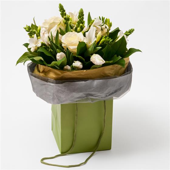 This fresh flower bouquet we have created with our own loving hands showcases natural charm in every stem. Order bouquets and arrangements online with ease, telephone or visit our shop in person if you are local, where every flower is crafted with attention to detail. Please note that due to the seasonal availability of flowers it may be necessary to vary individual stems from those shown. Our skilled florists may substitute flowers for one similar in style, quality and value. Where our designs include a sundry item like a vase or basket it may not always be possible to include the exact item as displayed. If such an occasion arises we will make every effort to replace the item with a suitable alternative.